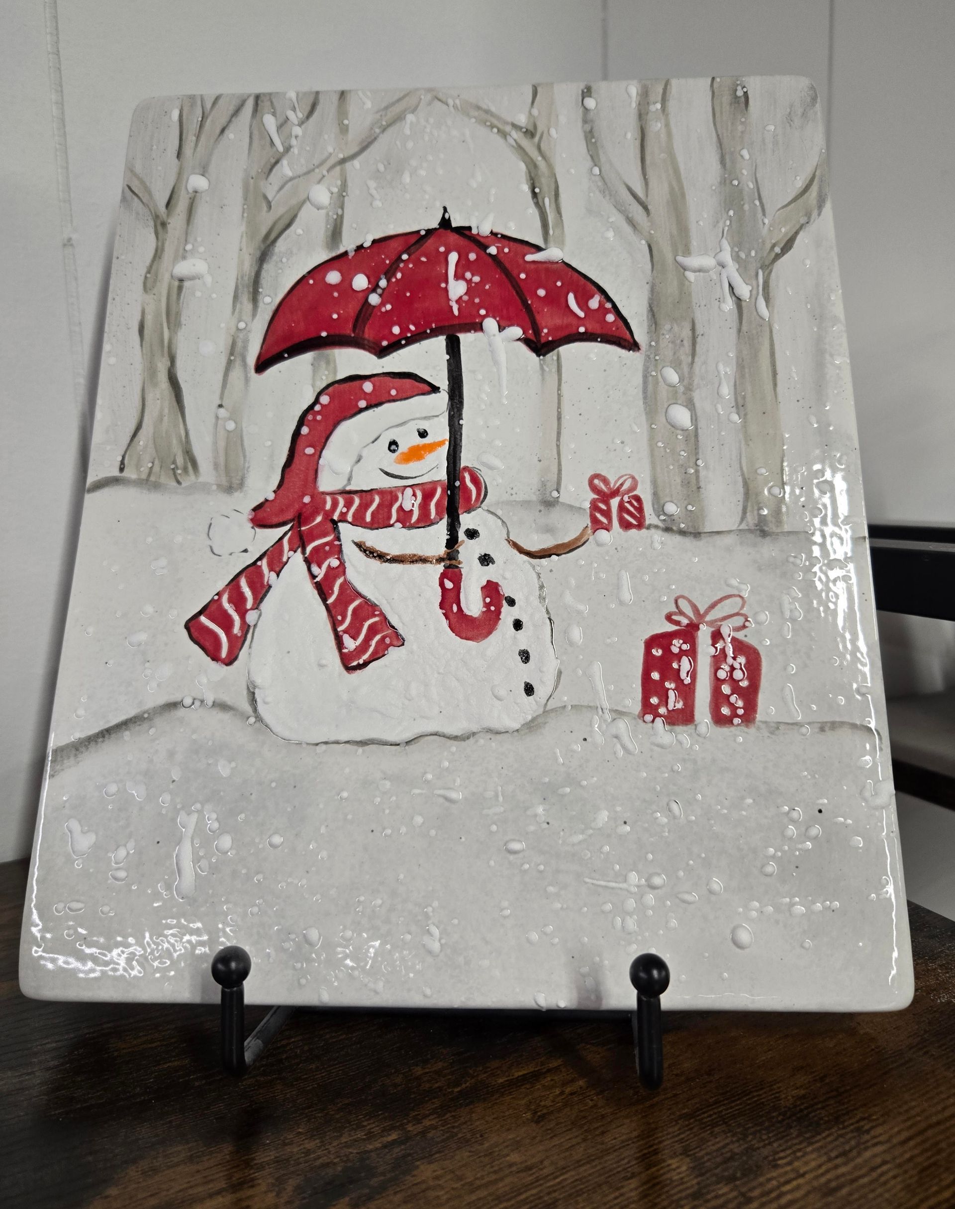This class will be done on a 8×10 ceramic canvas. It is a pattern that will be traced (not handpainted). You will learn some shading techniques and use speciality glaze.